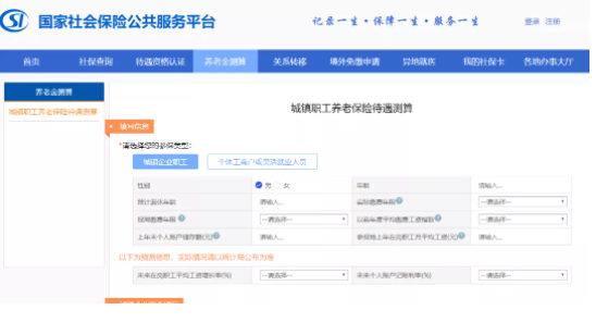 人社部于2019年底通過(guò)國(guó)家社會(huì)保險(xiǎn)公共服務(wù)平臺(tái)開(kāi)通了養(yǎng)老金測(cè)算服務(wù),目前支持的是城鎮(zhèn)企業(yè)職工、個(gè)體工商戶(hù)或靈活就業(yè)人員的養(yǎng)老金測(cè)算。